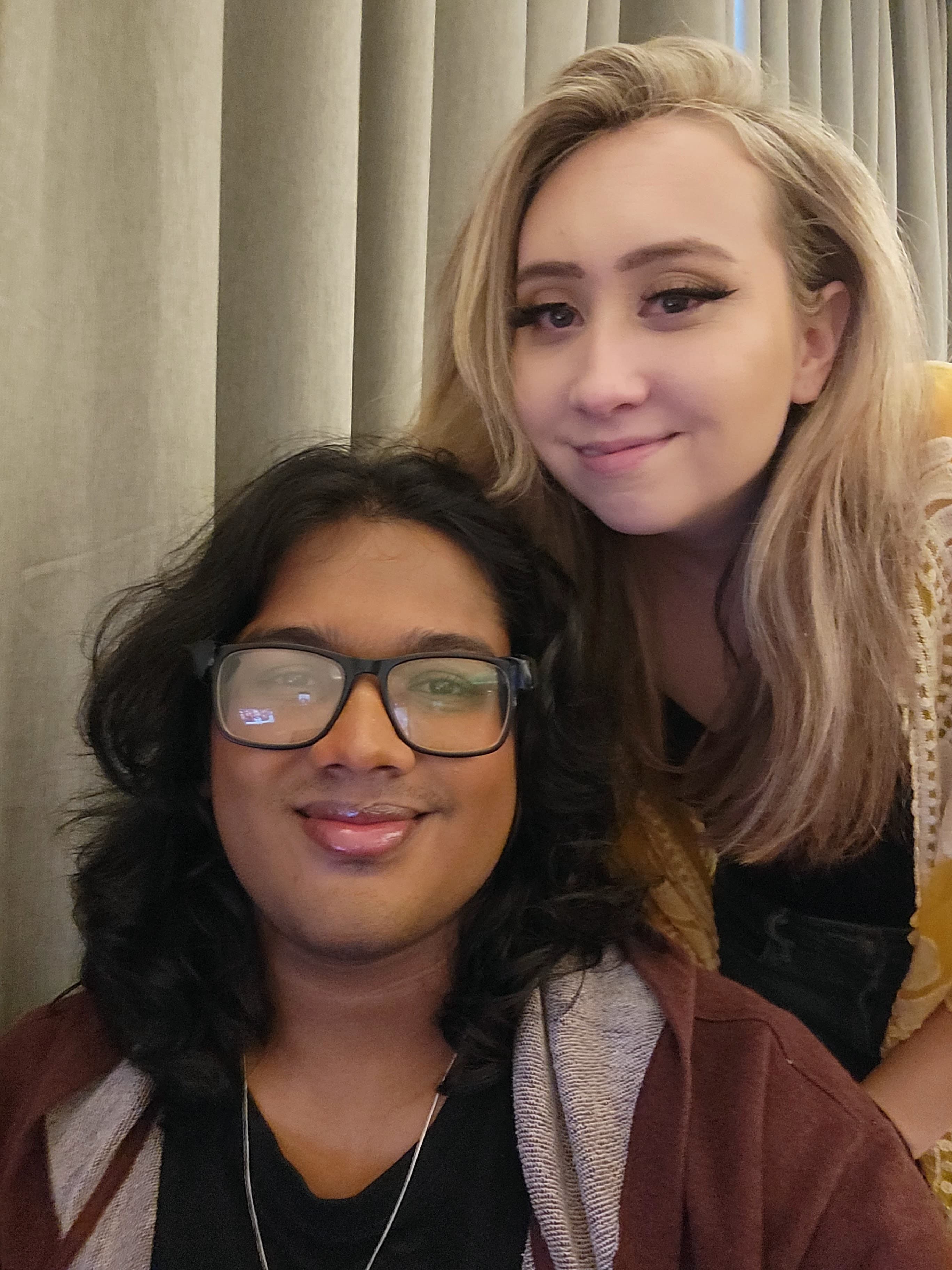 I had met this boy from Sri Lanka. His name is Duruthu. His joke nickname in highschool was Dorothy. For a year we would just comment back and forth and recreate each others art. One day, he posted a picture of an orange tabby kitten, that he tagged me in and jokingly asked, if I wanted him. I responded with a Picture of tigger and our first direct message saying, nah I got my own. We started talking back and forth from there. Making up our own stories about our cats taking over the world one day together. We became instant best friends talking everyday, drawing together, supporting each other. We would skype all the time, It took me about a year to be able to start speaking to him but, he did'nt mind. Slowly he was helping me learn how to communicate. Everytime Tigger saw him on camera he would come over to look at the screen and just sit there purring with the squint in his eye again. It felt nice like it was my grandma's approval. Meeting him was the best thing that has ever happen to me. He changed the course of my life.